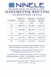 6109 Комплект брючный Комплект брючный 3-х предметный, состоящий из кардигана, блузки и брюк. Кардиган прямого силуэта, выполнен из гипюра. Модель без застежки, без подкладки и плечевых накладок. Перед с нагрудными вытачками, направленными от пройм. По линии горловины и бортам отложной воротник-шаль. Рукав втачной трехчетвертной, с притачными манжетами по низу. Длина кардигана – р.50-58 - 73 см; длина рукава – р.50-58 - 49 см. Блузка полуприлегающего силуэта, выполнена из трикотажного полотна «масло». Модель без плечевых накладок. Перед с V- образным вырезом по горловине, который оформлен пришивными бусинами. По спинке обработаны талиевые вытачки. Рукав короткий, втачной. Длина блузки- р.50-58 -59 см; длина рукава р.50-52 -30 см; р.54-58 -31,5 см. Брюки классические, длинные, с посадкой на талии, выполнены из костюмно- плательной ткани. Модель со стрелками. Передние и задние половинки брюк с талиевыми вытачками, направленными от пояса вниз. Спереди обработаны наклонные боковые карманы и центральная застёжка на тесьму-«молнию». Притачной пояс застегивается на 1 петлю и 1 пуговицу; для лучшего прилегания по линии талии в притачном поясе предусмотрена эластичная лента, вставленная по спинке. Длина брюк по боковому (с поясом) р.50-52 -103 – см; р.54-58 -31,5 см.