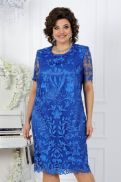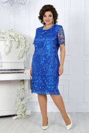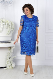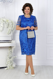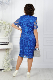 Платье футляр с кружевом и атласом, нарядное Ninele 7231 василек