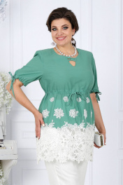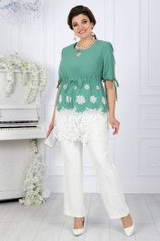 Летний брючный костюм из хлопка с кулисами Ninele 7417 фисташка