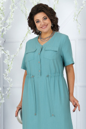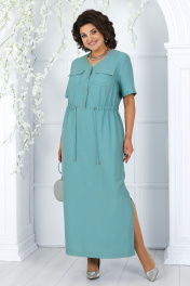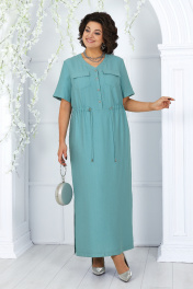 7461 Платье женское Представляем вашему вниманию летнее платье от Нинель, созданное из натуральной ткани вискозы, идеальной для летних дней. Для идеальной посадки, по спинке праздничного платья предусмотрена кулиса, в которую втянут шнур. Такой дизайн элегантно формирует правильный силуэт фигуры, подчеркивая ее достоинства. Платье женское свободного силуэта из костюмно-плательной ткани, без подкладки. Длина по среднему шву спинки 139 см. По переду настрочены нагрудные накладные карманы с клапаном. По переду имеются нагрудные вытачки, выходящие от центра проймы. Спинка цельнокроеная. Горловина спинки округлая, по переду V-образной формы. Планка до уровня талии, застегивается на петли и пуговицы. По талии настрочена кулиса с вдетым декоративным шнуром. С помощью фиксаторов можно подчеркнуть линию талии. По бокам разрезы. Рукава втачные, одношовные. Длина рукава 27 см.