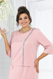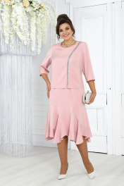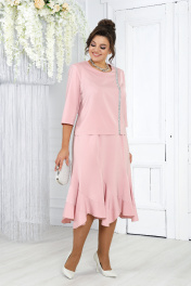 Нарядный комплект из блузки и юбки с пышными воланами и застежкой Ninele 7473 пудра