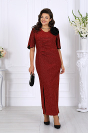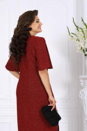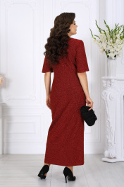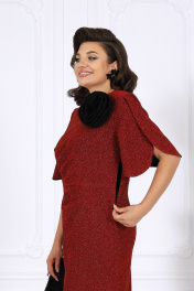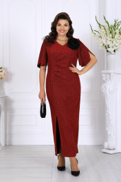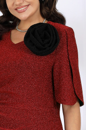 7481 Платье женское Шикарное вечернее платье из блестящего трикотажа с эффектом «люрекс» станет вашим идеальным выбором для праздничного образа! Длинный силуэт и элегантный разрез добавляют модели утонченную женственность, а короткие рукава «крылышко» создают лёгкость и комфорт. Эластичный трикотаж не сковывают движений, обеспечивая комфорт на протяжении всего вечера. Будьте в центре внимания в этом нарядном платье, идеально подходящем для любых торжественных событий! Платье женское полуприлегающего силуэта, выполнено из трикотажного полотна с фактурной лицевой стороной «люрекс». Модель на трикотажной подкладке, с плечевыми накладками. В левом боковом шве расположена застежка на потайную тесьму-«молнию» (35 см). Перед платья со смещенным к боковому шву рельефом, идущим от проймы до низа; в нижней части рельефа обработан разрез. Левая часть переда отрезная по линии талии, с односторонними горизонтальными складками, направленными от рельефа к центру. Спинка с талиевыми вытачками. Горловина спинки округлая, по переду V-образная, углубленная. Рукав короткий, втачной, формы «крылышко на запах», со скругленными срезами. Платье дополнено съемным «цветком» из основного полотна. Длина платья - 136 см; длина рукава - 34 см.