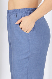 7492 Комплект брючный Этот костюм - идеальное сочетание стиля, комфорта и практичности. Он подойдет как для деловых встреч, так и для повседневного использования, дополняя ваш образ уверенностью и элегантностью. Если вам нравится изделия из натурального льна, но надоело ходить всегда в мятой одежде, то ткань лен вишер эта ваше находка. Хотя в составе ткани не присутствует лен, она прекрасно дышит и полностью повторяет текстуру натурального льна, а самое главное она практически не мнется. Комплект брючный 3-х предметный, состоящий из жакета, джемпера и брюк. Жакет прямого силуэта, выполнен из ткани «лен-вишер». Модель без подкладки, с плечевыми накладками и однобортной внешней застежкой с отрезными планками на 7 петель и 7 пуговиц. Перед с нагрудными вытачками, выходящими из пройм. В нижней части переда настрочены накладные карманы с бантовой складкой посередине кармана и клапаны, застегивающиеся на 1 петлю и 1 пуговицу. По спинке и частично по переду настрочена кулиса, в которую втянут поясок из основной ткани. Для регулировки сборки по кулисе предусмотрены фиксаторы, концы пояса оформлены наконечниками. Горловина округлой формы со стояче-отложным воротником на отрезной стойке. Рукав втачной, длинный, с притачной манжетой, застегивающейся на 1 петлю и 1 пуговицу; по середине рукава настрочена пата, застегивающаяся на 1 петлю и 1 пуговицу, что позволяет регулировать длину рукава. Длина жакета - 71 см (46-50 р-р), 72 см (52-60 р-р), 73 см (62-66 р-р). Длина рукава (с манжетой) - 61 см. Джемпер полуприлегающего силуэта, выполнен из хлопкового трикотажного полотна. Перед с нагрудными вытачками, выходящими из пройм. От горловины вниз застрочены 4 складки. Горловина переда и спинки округлой формы, по переду углубленная. Срезы горловин окантованы косой бейкой. Рукав втачной, короткий. Длина джемпера -60 см (46-50 р-р), 65 см (52-60 р-р), 67 см (62-66 р-р). Длина рукава – 24,5 см (46-50 р-р), 25,5 см (52-60 р-р), 26,5 (62-66 р-р). Брюки классические длинные, прямого силуэта, с посадкой на талии, выполнены из ткани «лен-вишер». Модель без застёжки, на притачном поясе, с эластичной лентой внутри. Передние половинки брюк с боковыми наклонными карманами. Длина брюк по боковому (с поясом)-103 см (46-54 р-р), 104,5 см (56-60 р-р), 106 см (62-66 р-р).