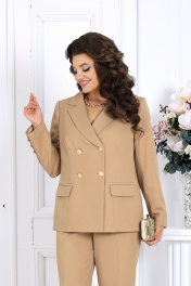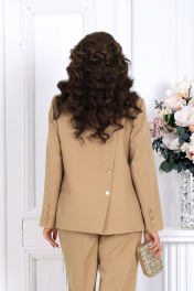 7502 Костюм брючный Двубортный брючный костюм — выбор тех, кто предпочитает стиль с характером. Эффектная асимметрия, дизайнерская застёжка и чёткая посадка делают этот комплект безупречным решением для яркого офисного дня, вечернего выхода или модного события. Он создан для тех, кто умеет сочетать деловую элегантность с фэшн-акцентами. Костюм брючный 2-х предметный, состоящий из жакета и брюк. Жакет двубортный, полуприлегающего силуэта, выполнен из костюмной поливискозы. Модель на подкладке, с плечевыми накладками. Спереди обработаны рельефные швы, направленные от пройм до низа; в нижней части переда расположены прорезные карманы с клапаном. Перед со смещенной внешней застежкой на 2 декоративные пуговицы и внутренней на 2 потайные. Спинка асимметричная, с одним косым рельефным швом, направленным от правого плечевого до низа; в шве обработана высокая шлица с застежкой на 2 декоративные пуговицы. На нижней части спинки, слева – имитация прорезного кармана «в рамку». Воротник пиджачного типа. Рукав длинный, втачной; в нижней части локтевого шва – имитация шлицы с застежкой на 3 пуговицы. Длина жакета - 66 см; длина рукава - 61 см. Брюки классические, с кантами и посадкой на талии, выполнены из костюмной поливискозы. Модель с центральной застёжкой на тесьму-«молнию», на притачном поясе, застегивающемся на петлю и пуговицу. Передние и задние половинки брюк с талиевыми вытачками, направленными от пояса вниз. Спереди обработаны боковые наклонные карманы. Для лучшего прилегания брюк в области талии в поясе по задним половинкам вставлена эластичная лента. Длина брюк по боковому (с поясом)-107.