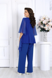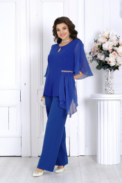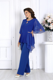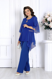 7512 Комплект брючный Этот костюм сочетает в себе женственность, комфорт и безупречный крой, подчеркивающий фигуру и скрывающий возможные нюансы. Воздушная блузка выполнена из мягкого трикотажа «масло» и дополнена асимметричной шифоновой деталью, создающей красивый драпирующийся силуэт. Украшение в виде страз и изящный вырез «капля» добавляют образу благородного блеска и утонченности. Легкий рукав формы «крылышко» дарит ощущение свободы и легкости движений. Классические брюки со стрелками идеально садятся по фигуре благодаря эластичной вставке в поясе и мягкой посадке на талии. Этот костюм отлично подходит для женщин с пышными формами — подчеркивает достоинства, визуально вытягивает силуэт и делает образ торжественным и уверенным. Идеален для новогодних праздников, юбилеев, вечеринок и торжеств. Комфортный и нарядный — он станет вашей любимой праздничной двойкой! Комплект брючный 2-х предметный, состоящий из блузки и брюк. Блузка полуприлегающего силуэта, выполнена из трикотажного полотна «масло». Модель без воротника и застежки. На переде и спинке обработаны рельефные швы, направленные от проймы до низа. На левой боковой части переда – горизонтальный подрез с отлетной деталью из шифона. Шов подреза декорирован тесьмой со стразами. Горловина круглой формы, окантована косой бейкой из основного полотна; спереди декорирована стразами и дополнена вырезом «капля». Рукав короткий, формы «крылышко на запах», со скругленными срезами; выполнен из шифона. Длина блузки – 57 см; длина рукава – 41 см. Брюки классические, длинные, с посадкой на талии, выполнены из костюмно- плательной ткани. Модель со стрелками. Передние и задние половинки брюк с талиевыми вытачками, направленными от пояса вниз. Спереди обработаны наклонные боковые карманы и центральная застёжка на тесьму-«молнию». Притачной пояс застегивается на 1 петлю и 1 пуговицу; для лучшего прилегания по линии талии в притачном поясе предусмотрена эластичная лента, вставленная по спинке. Длина брюк по боковому (с поясом) -- 107 см.