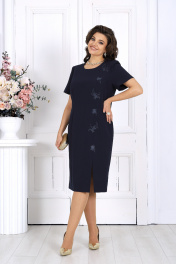 7516 Комплект женский Этот вечерний костюм создан для женщин, которые ценят роскошь в деталях и хотят выглядеть безупречно на любом торжестве — будь то Новый год, свадьба, юбилей или праздничный вечер. Костюм сочетает в себе утончённость, комфорт и продуманную посадку, которые делают образ стройным, уверенным и безупречно нарядным. Лёгкая кружевная накидка из гипюра создаёт эффект многослойности и скрывает зону рук, делая образ благородным и элегантным. Силуэт свободный, комфортный, с аккуратной застёжкой на декоративную пуговицу. Кружевное красиво играет на свету и подчёркивает праздничное настроение. Комплект женский 2-х предметный, состоящий из платья и накидки. Платье женское, полуприлегающего силуэта, выполнено из костюмно-плательной ткани. Модель на трикотажной подкладке. С плечевыми накладками. Перед с рельефами, направленными от плечевых швов; в нижней части левого рельефного шва обработан разрез, по шву настрочена аппликация, дополненная перламутровыми бусинами. Спинка с рельефами, направленными от плечевых швов; в верхней части среднего шва обработана застежка на потайную тесьму-«молнию» (50см). Горловина круглой формы, углубленная спереди. Рукав втачной, короткий. Длина платья – 104 см; длина рукава – 23 см. Накидка свободного кроя, выполнена из гипюра. Модель с застежкой спереди на декоративную пуговицу и навесную петлю. Горловина округлой формы, окантована узкой косой бейкой из костюмно-плательной ткани. Длина накидки (по середине спинки) – 46 см.