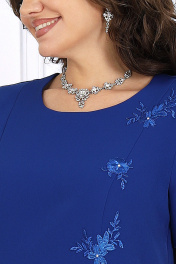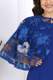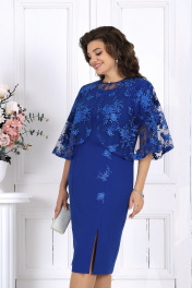 7516 Комплект женский Этот вечерний костюм создан для женщин, которые ценят роскошь в деталях и хотят выглядеть безупречно на любом торжестве — будь то Новый год, свадьба, юбилей или праздничный вечер. Костюм сочетает в себе утончённость, комфорт и продуманную посадку, которые делают образ стройным, уверенным и безупречно нарядным. Лёгкая кружевная накидка из гипюра создаёт эффект многослойности и скрывает зону рук, делая образ благородным и элегантным. Силуэт свободный, комфортный, с аккуратной застёжкой на декоративную пуговицу. Кружевное красиво играет на свету и подчёркивает праздничное настроение. Комплект женский 2-х предметный, состоящий из платья и накидки. Платье женское, полуприлегающего силуэта, выполнено из костюмно-плательной ткани. Модель на трикотажной подкладке. С плечевыми накладками. Перед с рельефами, направленными от плечевых швов; в нижней части левого рельефного шва обработан разрез, по шву настрочена аппликация, дополненная перламутровыми бусинами. Спинка с рельефами, направленными от плечевых швов; в верхней части среднего шва обработана застежка на потайную тесьму-«молнию» (50см). Горловина круглой формы, углубленная спереди. Рукав втачной, короткий. Длина платья – 104 см; длина рукава – 23 см. Накидка свободного кроя, выполнена из гипюра. Модель с застежкой спереди на декоративную пуговицу и навесную петлю. Горловина округлой формы, окантована узкой косой бейкой из костюмно-плательной ткани. Длина накидки (по середине спинки) – 46 см.