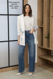 Цвет - “экрю” Стильный удлиненный жакет прямого силуэта на вискозной авторской подкладке. Изделие с центральной бортовой застежкой на пуговицы. Воротник пиджачного типа. На полочках нагрудные вытачки, прорезные карманы. Борта прямые. Спинка со средним швом и шлицей. Плечо удлиненное. Рукав длинный со шлицей и пуговицами. Дизайнерские принты являются изюминкой данного жакета.