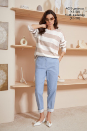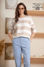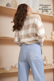 Цвет- Macchiato(кофе с молоком) Джемпер свободного силуэта - "Oversize", выполнен из мягкого вискозного вязаного полотна в полоску. Спущенная линия плеча. Рукав длинный. Спина прямая. Горловина круглая.