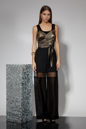 Авторские брюки, выполнены из двух видов ткани. Брюки прямые от бедра. Верх изделия выполнен из костюмной ткани с содержанием вискозы, изящное французское кружево выше линии колена , низ брюк выполнен из тонкого хлопка. Длина изделия 113