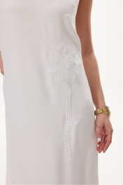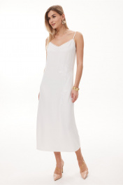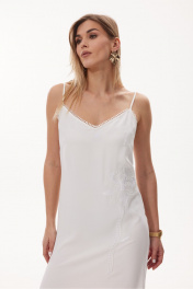 Платье прямого силуэта на бретелях, которые легко регулируются. Длина макси. Перед и спинка изделия декорированы тесьмой . По переду платья вышивка .