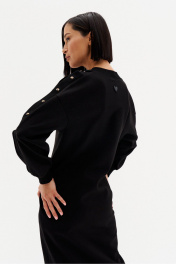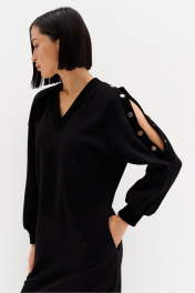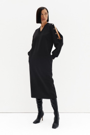 Универсальное трикотажное платье подойдёт каждой. Золотая фурнитура придаёт модели лоск и оригинальность.