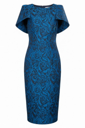 Платье-футляр - это воплощение сдержанной элегантности и утончённого стиля. Длина ниже колена и слегка приталенный силуэт подчёркивают женственность и стройность фигуры, а рукава-крылышки переходящие на спинку делают это платье особенным и идеальным выбором для различных мероприятий. Ткань – жаккард, с набивным рисунком в цветы. Хорошо держит форму. На подкладке. Силует – полуприлегающий, с вытачками по спинке. Молния потайная по спинке.