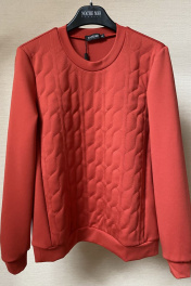 Стильный джемпер для создания ярких и комфортных аутфитов. Передняя полочка выполнена из стёганного полотна, спинка и рукава - из трикотажного полотна. На фото с юбкой 2.410. В 42 размере длина по спинке 59 см, длина рукава от плечевого шва 60 см. Ширина по линии груди: в 42 размере 47 см., в 44 размере 49 см., в 46 размере 51 см., в 48 размере 53 см., в 50 размере 55 см.