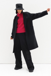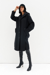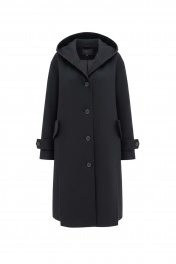 Пальто лаконичного кроя, с круглой горловиной и накладными карманами, с оригинальным дизайнерским решением в виде съёмного капюшона, выполнено из премиального полотна на основе шерсти.