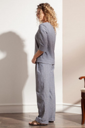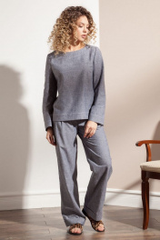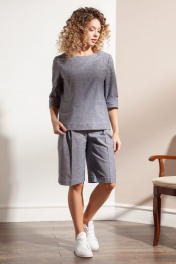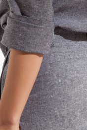 Блузка прямого силуэта из льняной меланжевой ткани. Рукава втачные длинные. Горловина округлой формы на широкой обтачке, закрепленной отделочной контрастной строчкой. Линия низа с высокой подгибкой