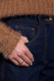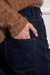Базовые джинсы современного силуэта, слегка зауженные к низу на притачном поясе с застежкой на молнию и пуговицу, с боковыми джинсовыми карманами спереди, с фигурной кокеткой и накладными карманами сзади.