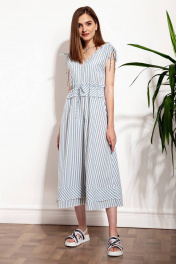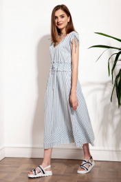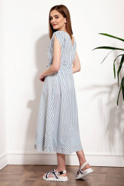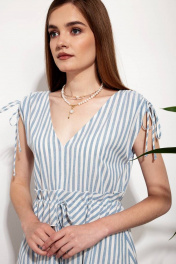 Льняное платье в полоску с рюшами и V-образным вырезом Nova Line 50244 полоска_голубая