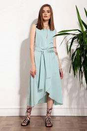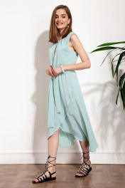 Элегантное платье из струящейся ткани с разрезом и поясом Nova Line 50257 мятный