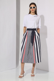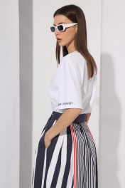Футболка свободной формы, покроя спущенное плечо, выполнена из х/б трикотажного полотна. Горловина округлой формы, обработана планкой. Рукав одношовный, до уровня локтя. На детали переда и на левом рукаве расположены тематические вышивки, выполненные нитками контрастного цвета. Футболка: Ширина изделия на уровне глубины: 42р – 51см, 44р – 53см, 46р – 55см Ширина по линии талии: 42р – 48см, 44р – 50см, 46р – 52см Ширина по линии бедер: 42р – 51см, 44р – 53см, 46р – 55см Длина по среднему шву спинки: 42р – 56см, 44р – 56см, 46р –56см Ширина плеча: 42р – 17см, 44р – 18см, 46р – 19см Ширина рукава под проймой: 42р – 19см, 44р – 19см, 46р – 19см Длина рукава: 42р – 20см, 44р – 20см, 46р – 20см