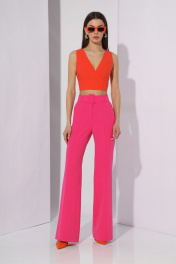 Топ выполнен из отделочной ткани, короткий, открытый, "V" - образный вырез по переду на запах, рельефы по переду, по низу – планка. По спинке – вытачки в центральной части, по низу планки расположена резинка (в притачной ткани). Ширина изделия на уровне глубины: 44р - 41см, 46р - 43см, 48р - 45см Ширина по линии низа: 44р - 33см, 46р - 35см, 48р - 37см