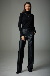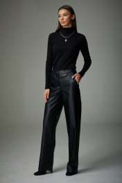 Демисезонные брюки из экокожи с застежкой и карманами N.O.W. 1336