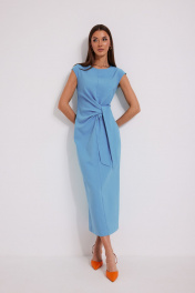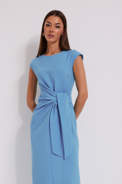 Платье женское, полуприлегающего силуэта, со слегка спущенным плечом. По переду в области талии драпировка, переходящая в завязывающийся пояс. Горловина округлой формы. Спинка со средним швом, в котором сверху потайная молния, снизу разрез, а так же вертикально направленные талиевые вытачки. Ширина изделия на уровне глубины: 42р – 44см, 44р – 46см, 46р – 48см, 48р – 50см, 50р – 52см, 52р – 54см; Ширина по линии талии: 42р – 35см, 44р – 37см, 46р – 39см, 48р – 41см, 50р – 43см, 52р – 45см; Ширина по линии бедер: 42р – 46,5см, 44р – 48,5см, 46р – 50,5см, 48р – 52,5см, 50р – 54,5см, 52р – 56,5см; Длина по среднему шву спинки: 127см; Ширина спинки: 42-46р – 39см, 48-52р – 41см; Ширина плеча: 42-46р – 14см, 48-52р – 15см.
