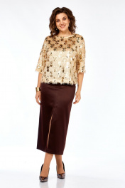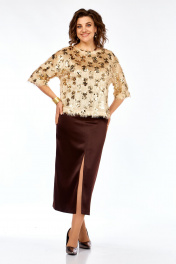 Блуза, юбка Ольга Стиль Л-433 золото-коричневый