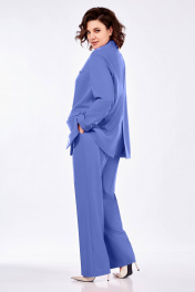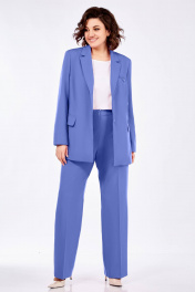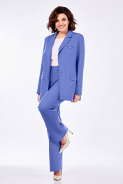Трехпредметный деловой костюм из текстиля: жакет, блуза, брюки Ольга Стиль С-823 джинс