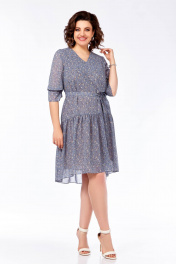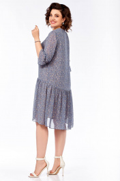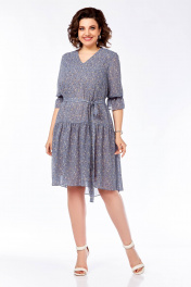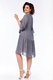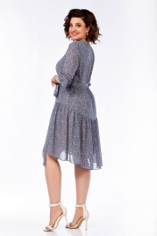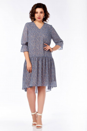 Шифоновое платье А-силуэта, на шифоновой подкладке, V-образный вырез горловины, притачной волан по низу, низ ассиметричный, в компелекте пояс из основной ткани, подчеркивающий фигуру. Рукав втачной, длиной три четверти, по низу присобран на резинку,создавая эффект манжеты-волана.