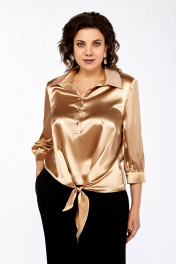 Бежевый атласный блузочный топ длиной 65 см Ольга Стиль С-878 платиновый