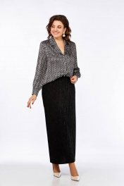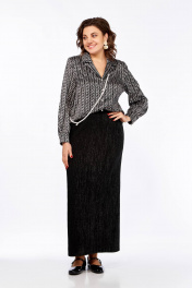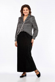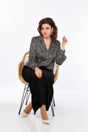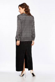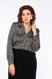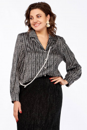 Блуза свободного силуэта с пиджачным воротником и длинным рукавом Ольга Стиль С-880 черно-белый