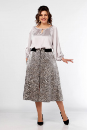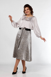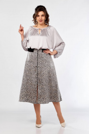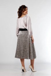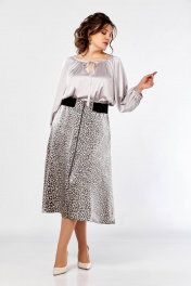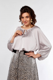 Блуза с сборками и юбка клеш, резинка, демисезон Ольга Стиль С-908 серый+дизайн
