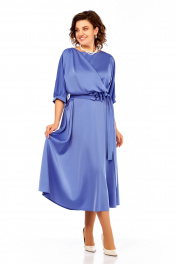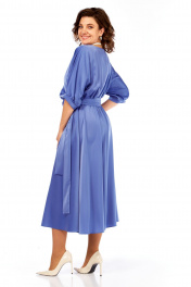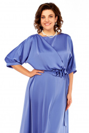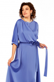 Нарядное платье из струящейся ткани, отрезное по линии талии. Верх летучая мышь, по низу рукава сборка и притачная манжета. Вырез горловины округлой формы. По переду ассиметричная деталь от плеча до линии подреза. По линии подреза резинка. Нижняя часть платья клеш. К платью прилагается интересный пояс, украшенный стразами. Длина платья 124см, длина рукава от горловины 46см С959 52 54 56 58 ОГ 116 120 124 128 ОТ(без растяжения) 46 90 94 98