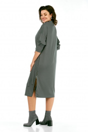 Платье женское, прямого силуэтв со спущенным длинным рукавом. Цельнокроенный воротник-стойка. Слевой стороны в области талии слева декор, в виде ниспадающего пояса. Карманы в боковых швах. Молния в левом боковом шве внизу функциональная молния, которая при растегивании превращается в разрез. Длина платья 115см, длина рукава от стойки 70см.