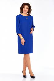 Нарядное платье, полуприлегающего силуэта. Вырез округлой формы, по центру шов, в верхней части, который уходит в ассиметричную складку, на которую пришиты декоративные пуговицы. Спинка со средним швом, молнией и разрезом. Рукав втачной, длиной ниже линии локтя, по низу вытачки, создающие дополнительный обьем по низу. Длина платья от плеча 98см, длина рукава 43см 52 54 56 ОГ 110 114 118 ОБ 116 120 124 Дл.рукава 43 43 43 Ширина рукава 20 21 22 Длина платья 98 98 98