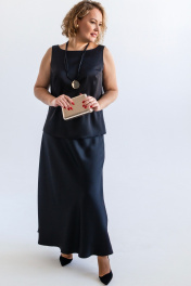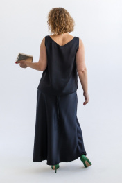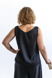 Блуза женская, прямого силуэта, без рукавов. Модель выполнена из струящегося текстиля с благородным блеском. Вырез горловины фигурный, по переду лодочка и v-образный по спинке. Нагрудные вытачки из проймы. По боковым швам внизу – небольшие разрезы, для более комфортной посадки. Блуза является базовой и прекрасно сочетается с вещами в различных стилях. А для создания комплекта, рекомендуем обратить внимание на юбку-макси из нашей капсульной коллекции.