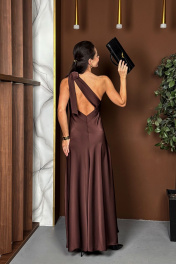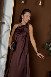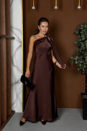 Эффектное платье с открытой спиной, асимметричного кроя из плотного струящегося атласа. Идеально для вашего праздничного образа! Это платье актуально в любое время и на любой случай.