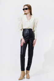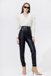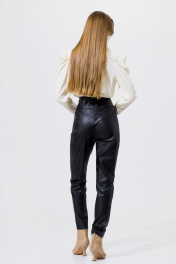 Брюки зауженные из экокожи с карманами и высоким поясом Орхидея 1127 черный