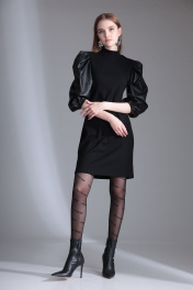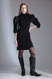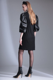 Платье с рукавами из экокожи и трикотажа на каждый день Орхидея 1136 черный