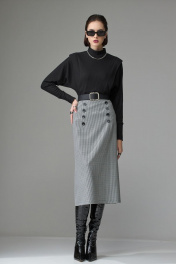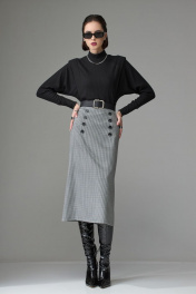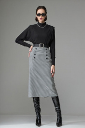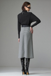 Джемпер выполнен из трикотажного полотна, покроя «летучая мышь». Перед и спинка резные, состоят из центральной части, нижней, рукава, манжеты, стойки воротника которой оформлена горловина. В шов притачивания рукава вставлена отделочная деталь имитирующая крылышко. Нижняя деталь джемпера выполнена из двойного слоя, что подчеркивает талию, делая её более утончённой. Ширина по груди: р42 – 44см, у р44 – 46см, р46 – 48см, р48 – 50см, р50 – 52см Ширина по линии талии: р42 – 35см, у р44 – 37см, р46 – 39см, р48 – 41см, р50 – 43см Ширина по низу: р42 – 39см, у р44 – 41см, р46 – 43см, р48 – 45см, р50 – 47см Длина по среднему шву спинки: р42 – 58см, у р44 – 58см, р46 – 58см, р48 – 60см, р50 – 60см Ширина рукава под проймой: р42 – 22см, у р44 – 23см, р46 – 24см, р48 – 25см, р50 – 26см Длина рукава (от высшей точки): р42 – 72см, у р44 – 72см, р46 – 72см, р48 – 74см, р50 – 74см