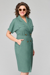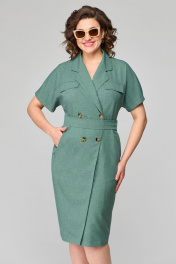 Платье летнее полуприлегающее с двубортной застежкой Орхидея 1248 зеленый
