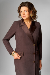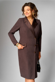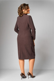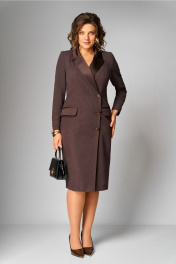 Платье женское, полуприлегающего силуэта, зауженное к низу, с двубортной застежкой (правая часть имеет слегка наклонную линию) на 3 отделочные пуговицы. На спинке средний шов, заканчивающийся шлицей и талиевые вытачки. По переду отрезной бочок, заканчивающийся в области бедер и нагрудная вытачка, в горизонтальном подрезе, в котором выполнен прорезной карман с двумя рамками и клапаном. Горловина оформлена воротником пиджачного типа. Рукав втачной, одношовный, длинный. Воротник, лацкан, клапаны и рамки кармана из атласной ткани. Ширина изделия на уровне глубины: 46р – 49см, 48р – 51см, 50р – 53см, 52р – 55см, 54р – 57см, 56р – 59см; Ширина по линии талии: 46р – 42см, 48р – 44см, 50р – 46см, 52р – 48см, 54р – 50см, 56р – 52см; Ширина по линии бедер: 46р – 51см, 48р – 53см, 50р – 55см, 52р – 57см, 54р – 59см, 56р – 61см; Длина по среднему шву спинки: 46-50р – 107см, 52-56р – 108см; Ширина спинки: 46-50р – 39см, 52-56р – 41см; Ширина плеча: 46-50р – 12,5см, 52-56р – 13,5см; Ширина рукава под проймой: 46р – 17,5см, 48р – 18,5см, 50р – 19,5см, 52р – 19,5см, 54р – 20,5см, 56р – 21,5см; Длина рукава: 46-56р – 61см.