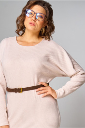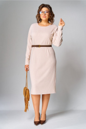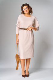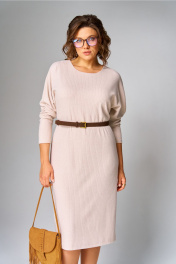 Платье женское полуприлегающего силуэта, цельнокроеного покроя рукава, выполнено из трикотажного полотна в рубчик. Горловина в платье округлой формы, оформлена обтачкой, по спинке застегивается на навесную петлю и пуговицу. Спинка со средним швом, талиевыми вытачками и разрезом. Рукава цельнокроеные с нижней отрезной частью. К платью ремень не прилагается. Ширина изделия на уровне глубины: 46р – 49см, 48р – 51см, 50р – 53см, 52р – 55см, 54р – 57см, 56р – 59см; Ширина по линии бедер: 46р – 50см, 48р – 52см, 50р – 54см, 52р – 56см, 54р – 58см, 56р – 60см; Длина по среднему шву спинки: 46-56р – 110см; Ширина рукава под проймой: 46р – 23см, 48р – 24см, 50р – 25см, 52р – 26см, 54р – 27см, 56р – 28см; Длина рукава: 46-56р – 73см.