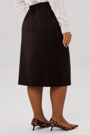 Юбка без подкладки, классическая, правильной длины миди, из стрейчевой ткани, свободного покроя, с аккуратным разрезом на ноге. Пояс юбки на широкой резинке, сбоку молния и петля-пуговица. Ткань хорошо тянется и это позволяет вам комфортно себя чувствовать. Размер 54 56 58 60 62 64 Длина по боков шву 73 73 73 75 75 75 Ширина по линии талии 44 46 48 50 52 54 Ширина по линии бедер 60 62 64 66 68 70 Высота разреза от низа юбки 22 22 22 22 22 22