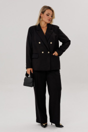 Элегантный классический черный костюм обрадует Вас посадкой и качеством пошива. Состоит из жакета и брюк. Классический приталенный двубортный жакет с пиджачным воротником на подкладке прямого кроя, имеет удобные функциональные карманы с клапанами, что добавляет практичности. Прекрасным решением в костюме являются позолоченные пуговицы на застежке и рукавах. Прямые брюки с высокой посадкой, на резинке. Для удобства и функциональности в боковых швах карманы- «хулиганы». Оригинальный костюм oversize – идеальное решение для современной женщины, он хорошо садится по фигуре, не мнётся, удобен для повседневной носки и прекрасно выглядит! Ткань хорошо тянется и это позволяет вам комфортно себя чувствовать. Этот костюм – готовый ансамбль не только для офиса, но и для особого мероприятия Размер 54 56 58 60 62 64 Ширина по линии груди 60 62 64 66 68 70 Ширина по линии бедер 63 65 69 71 73 75 Длина спинки 70 70 70 71 71 71 Длина рукава 60 60 60 61 61 61 Табель измерений в готовом виде Брюки Основные измерения Рост 170 Размер 54 56 58 60 62 64 Длина по боков шву 106 106 106 106 106 106 Длина по шагов шву 74 74 74 73 73 73 Ширина по линии талии 44 46 48 50 52 54 Ширина по линии бедер 62 64 66 68 70 72 Ширина по линии низа 54 55 56 59 60 62