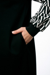 Платье свободного кроя мягко скрывает силуэт, даря комфорт и элегантную непринужденность. Круглая горловина подчеркивает линию ключиц, отлично сочетается с любыми украшениями и слоями одежды – от пиджака до косухи. Контрастные пышные рукава, собранные на манжету, главная изюминка модели. Графичный черно-белый принт сразу привлекает внимание, добавляя образу легкости и дерзости. Удобные боковые карманы и стильные разрезы по бокам добавляют комфорт и визуальную динамику. Платье сшито из премиального трикотажа с эластаном и турецкого трикотажного жаккарда. Это сочетание тканей - гарантия вашего эксклюзивного образа. Это платье – холст для вашей фантазии. Добавьте аксессуары, обувь и оно будет радовать вас по любому поводу – от рабочих встреч до ужина в городе. Внимание! Цветопередача фотографий на Вашем устройстве может отличаться от реальности. Рост 170 54 56 58 60 62 64 Ширина по груди 64 66 68 70 72 74 Ширина по бедрам 64 66 68 70 72 74 Ширина плеча 12 12 12 13 13 13 Ширина рукава внизу 20 20 20 21 21 21 Длина рукава 60 60 60 60 60 60 Длина изделия 120 120 120 120 120 120