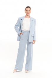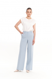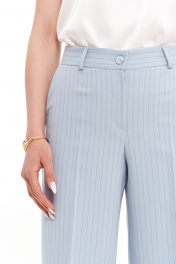 Женские свободные брюки прямого кроя из смесовой ткани в полоску – универсальный базовый элемент гардероба для повседневной, офисной и нарядной носки. Эти классические брюки идеально подходят для весеннего и летнего сезона, сочетая комфорт и элегантность. Свободный крой и продуманный дизайн делают их отличным выбором для делового стиля, а также для создания повседневных и праздничных образов. Верхний срез обработан притачным поясом с застежкой на крючок и тесьму-молнию в среднем шве, обеспечивая удобную посадку. Наличие шлевок позволяет носить брюки с ремнем, а четыре талиевые вытачки на задней части подчеркивают женственный силуэт. Практичный боковой карман с подкройным бочком добавляет функциональности. Нежный голубой оттенок делает эти женские брюки стильным акцентом в базовом гардеробе. Они легко комбинируются с блузами, жакетами и топами, подходя для офисного дресс-кода, повседневных прогулок или торжественных мероприятий. Свободный крой обеспечивает комфорт в течение всего дня, а классический фасон сохраняет актуальность в любом сезоне. 46 Брюки: Высота посадки - 27.5см, Длина брюк без пояса - 106см, Длина по внутреннему шву - 83см, Ширина брючин сверху - 68.5см, Обхват брюк по низу - 63см, Ширина по бедрам - 51.5см, Ширина по талии - 39см; 48 Брюки: Высота посадки - 28см, Длина брюк без пояса - 106.5см, Длина по внутреннему шву - 83см, Ширина брючин сверху - 70.5см, Обхват брюк по низу - 64.5см, Ширина по бедрам - 53.5см, Ширина по талии - 41см; 50 Брюки: Высота посадки - 28.5см, Длина брюк без пояса - 106.5см, Длина по внутреннему шву - 83см, Ширина брючин сверху - 72.5см, Обхват брюк по низу - 66см, Ширина по бедрам - 55.5см, Ширина по талии - 43.5см; 52 Брюки: Высота посадки - 28.5см, Длина брюк без пояса - 106.5см, Длина по внутреннему шву - 83см, Ширина брючин сверху - 74.5см, Обхват брюк по низу - 68см, Ширина по бедрам - 57.5см, Ширина по талии - 46см; 54 Брюки: Высота посадки - 29см, Длина брюк без пояса - 107см, Длина по внутреннему шву - 83см, Ширина брючин сверху - 76.5см, Обхват брюк по низу - 69.5см, Ширина по бедрам - 59.5см, Ширина по талии - 48см;