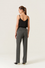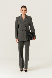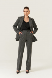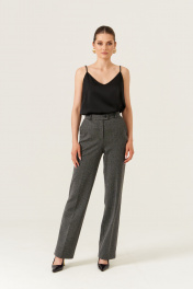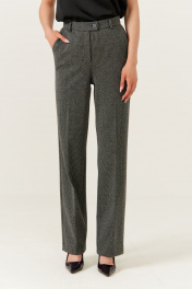 Брюки женские прямые из смесового трикотажного полотна. Верхний срез юбки обработан притачным поясом с застежкой на одну обметанную петлю и одну пуговицу, а также имеется застежка-молния в среднем шве брюк. Срез пояса обработан окантовкой. Пояс со шлёвками, что дает возможность носить брюки под ремень. Задняя часть брюк имеет две талиевые вытачки, а также два прорезных кармана в рамку с двумя обтачками. В боковых швах имеются карманы с подкройным бочком. Брюки отлично подойдут для разного рода мероприятий. Брюки серого оттенка отлично будут смотреться под любой образ и радовать вас каждый день. Данные брюки имеют идеальную посадку за счёт чего они превосходно будут сидеть на любой фигуре. 46 Брюки: Высота посадки - 29,5см, Длина брюк без пояса - 109,5см, Длина по внутреннему шву - 85см, Ширина брючин сверху - 67см, Обхват брюк по низу - 46см, Ширина по бедрам - 52см, Ширина по талии - 38см;