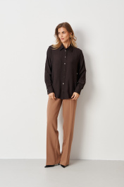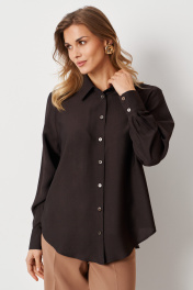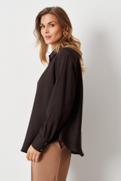 Эта стильная женская блузка чёрного оттенка идеально подойдет для повседневной носки. Выполненная в прямом силуэте, она обеспечивает комфорт и свободу движений. Ткань поливискозная, струящаяся, что придает изделию легкость и изящность. Перед украшен центральной бортовой застежкой на обметанные петли и пуговицы, а низ изделия выполнен с закругленным краем, добавляя изящества образу. Горловина оформлена классическим рубашечным воротником, а рукава завершены притачными манжетами с застежками на две обметанные петли и пуговицы — практично и стильно. Эта очень легкая и практичная блузка станет отличным выбором для ежедневных образов, сочетая комфорт с элегантностью и привлекательностью. 42 Блузка: Длина изделия - 72см, Длина рукава - 58см, Обхват шеи - 47см, Ширина плеча - 14.7см, Ширина по груди - 59см, Ширина по низу - 64см, Ширина рукава - 22.5см; 44 Блузка: Длина изделия - 72см, Длина рукава - 58см, Обхват шеи - 47.5см, Ширина плеча - 15см, Ширина по груди - 61см, Ширина по низу - 66см, Ширина рукава - 23.2см; 46 Блузка: Длина изделия - 72см, Длина рукава - 58см, Обхват шеи - 48см, Ширина плеча - 15см, Ширина по груди - 63см, Ширина по низу - 68см, Ширина рукава - 24см; 48 Блузка: Длина изделия - 72.5см, Длина рукава - 58см, Обхват шеи - 48.5см, Ширина плеча - 15.2см, Ширина по груди - 65см, Ширина по низу - 70см, Ширина рукава - 24.8см; 50 Блузка: Длина изделия - 72.5см, Длина рукава - 58см, Обхват шеи - 49.5см, Ширина плеча - 15.2см, Ширина по груди - 67см, Ширина по низу - 72см, Ширина рукава - 25.5см; 52 Блузка: Длина изделия - 72.5см, Длина рукава - 58см, Обхват шеи - 50.5см, Ширина плеча - 15.5см, Ширина по груди - 69см, Ширина по низу - 74см, Ширина рукава - 26.2см; 54 Блузка: Длина изделия - 72.5см, Длина рукава - 58см, Обхват шеи - 51см, Ширина плеча - 15.8см, Ширина по груди - 71см, Ширина по низу - 76см, Ширина рукава - 27см;